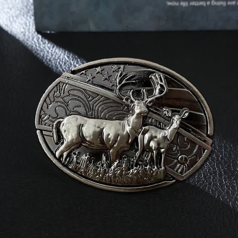 - There are deers with the American flag acting as the backgound.ย