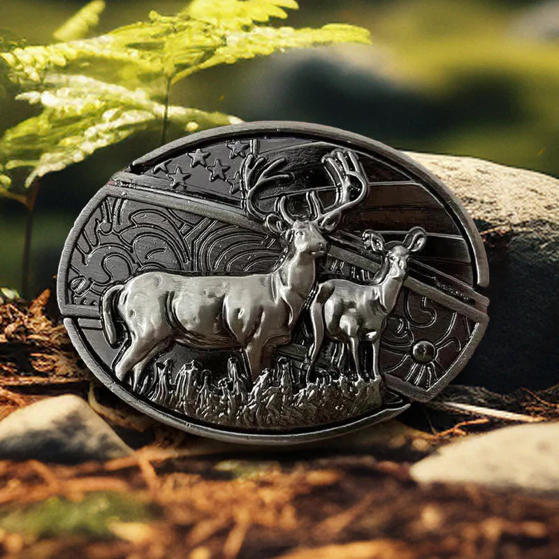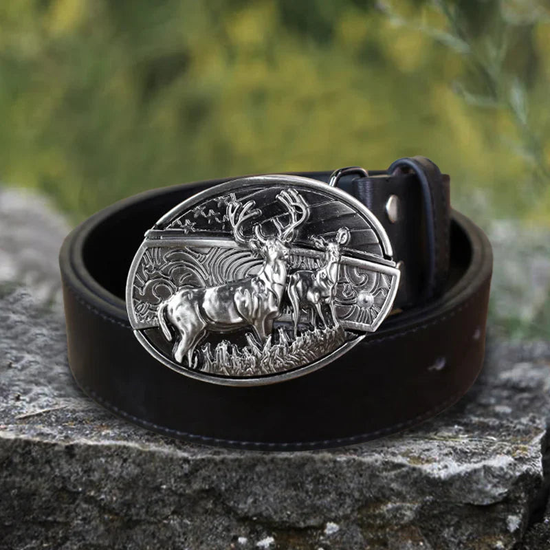 Men's DIY Deer Flag Hidden Folding Knife Leather Belt
