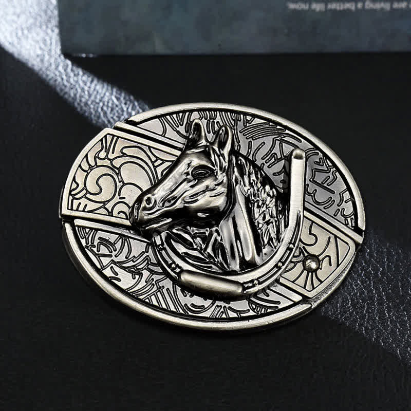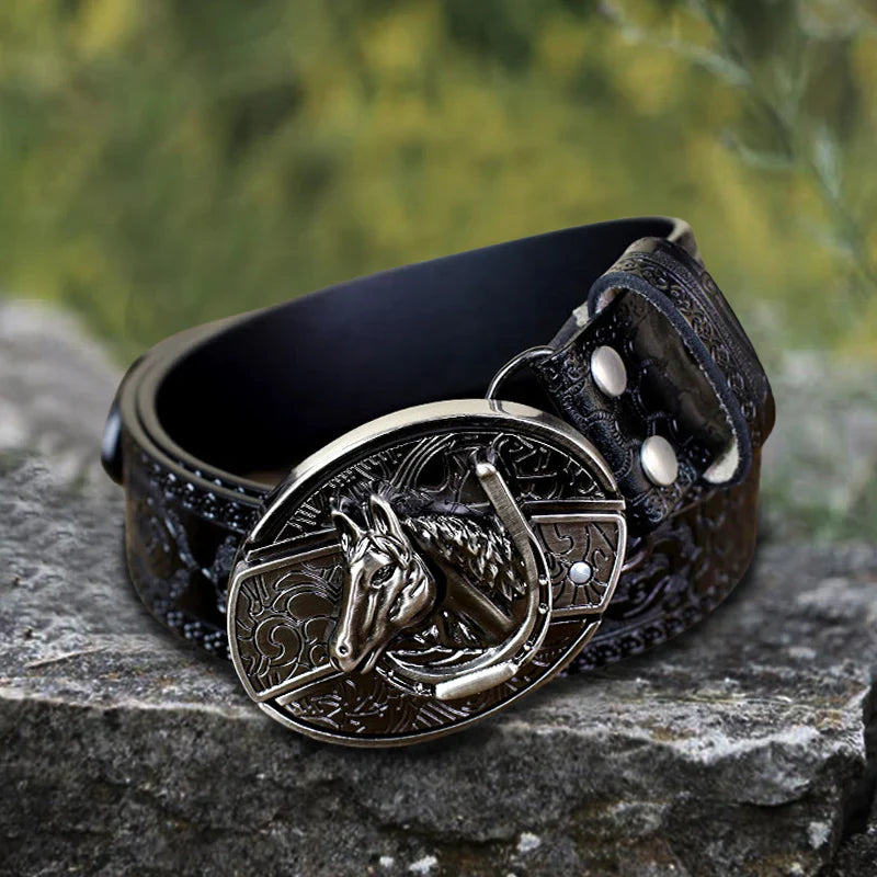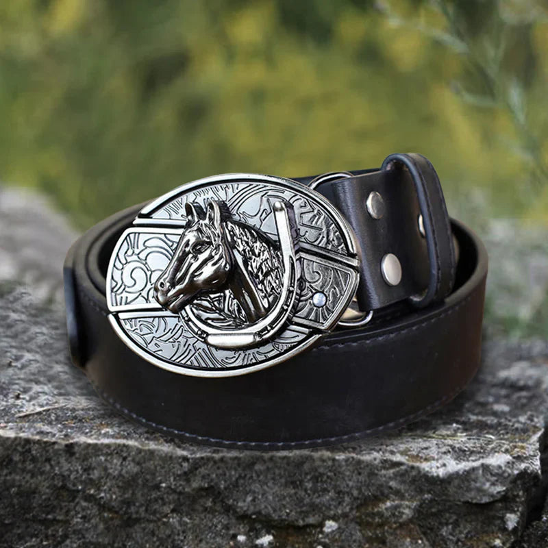 Men's DIY Horse Head Hidden Folding Knife Leather Belt