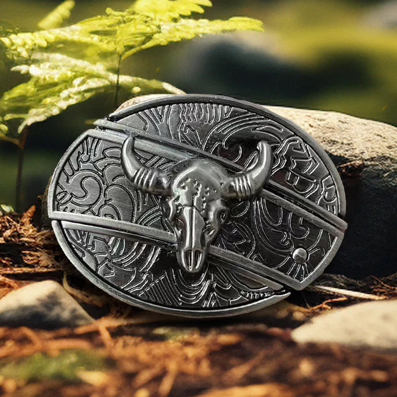 Men's DIY Longhorn Bull Hidden Folding Knife Leather Belt