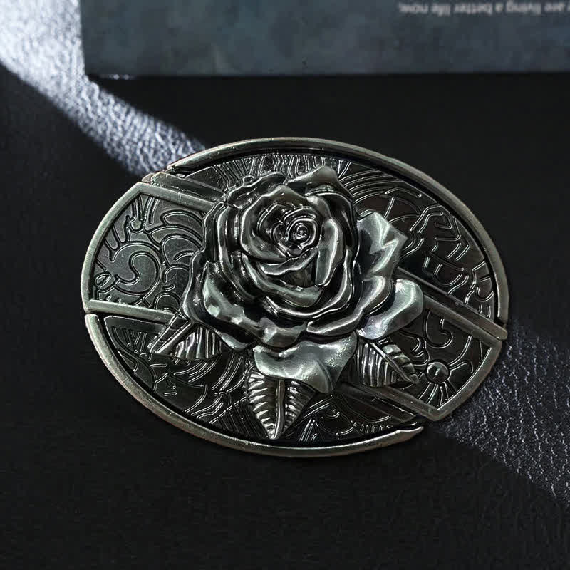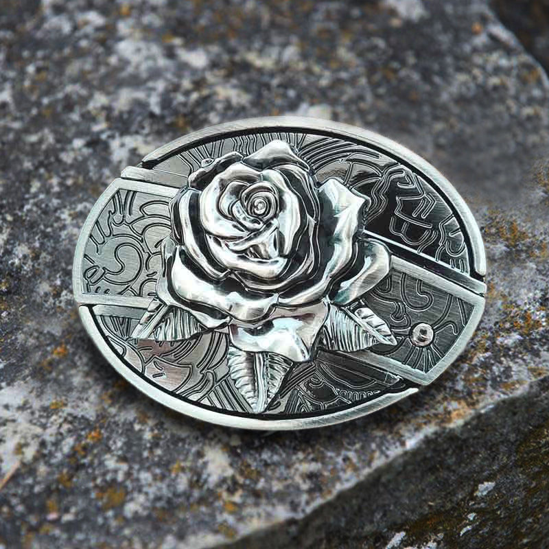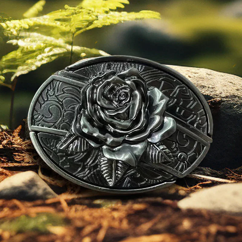 Men's DIY Western Rose Hidden Folding Knife Leather Belt